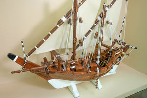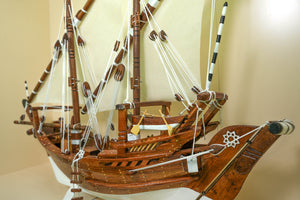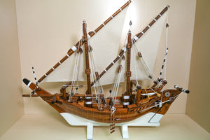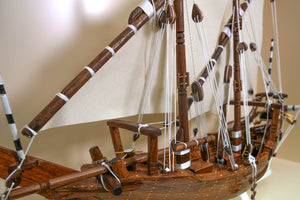 مجسّم بوم تراثي خليجي مصنوع يدويًا من خشب الساج البورمي الفاخر. طول 110 سم وارتفاع 90 سم وعمق 24 سم، بوزن 5.6 كجم. قطعة ديكور فاخرة تُجسّد روح الغوص واللؤلؤ في الخليج، مناسبة للمكاتب والمجالس والهدايا الرسمية.